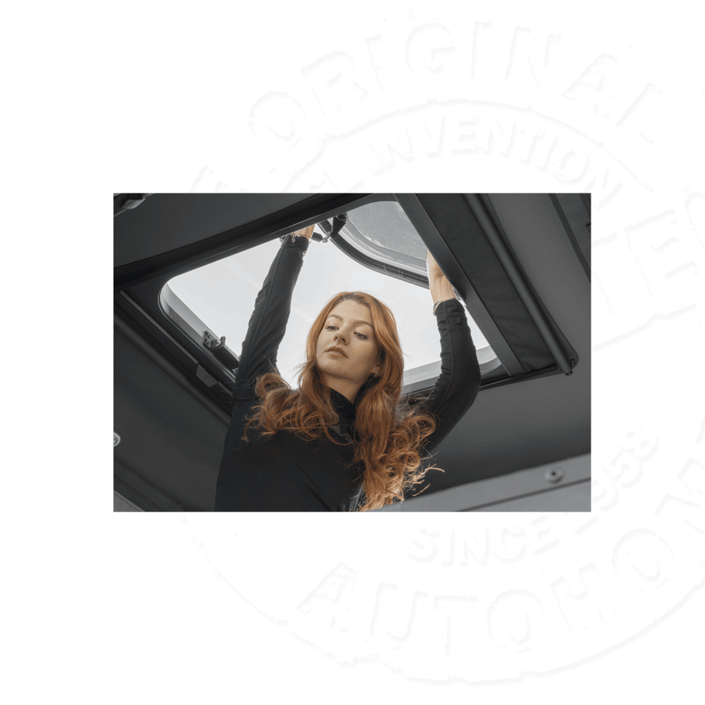 Die 360° Panorama - Rundumsicht ermöglicht dir den direkten Kontakt mit der Natur. Das innovative "black edition" Fiberglas-Moskitonetz ist sehr dicht und verdunkelnd. Darüber hinaus schützt es dich vor neugierigen Blicken und gewährleistet eine erforderte Privatsphäre. Angenehme Belüftung & ein hervorragendes Raumklima bietet dir das neue Dachfenster das komplett oder nur teilweise geöffnet werden kann. Zusätzlich ist es abdunkelbar für die Nacht. Der Aufbau mit der Kurbel aus der Serie Grand Tour ermöglicht dir ein schnelles Auf u. Abbau des Dachzeltes.