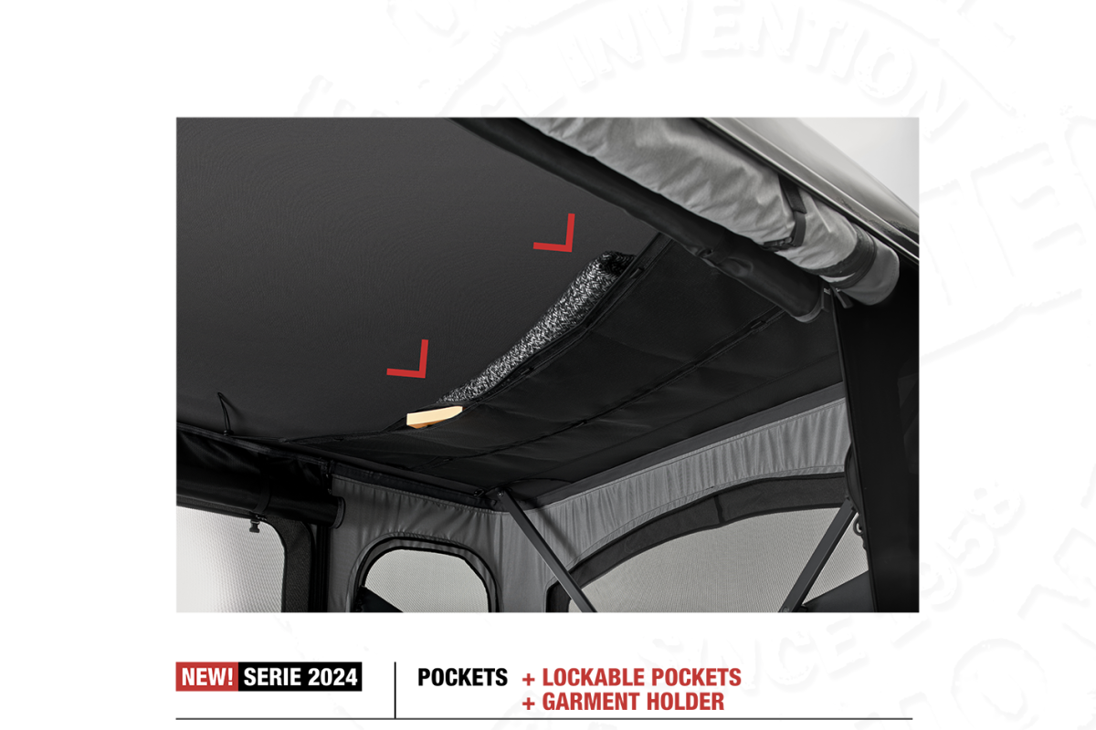 - 3 im bewährte Schnellspanner verschließen das Dachzelt zuverlässig.