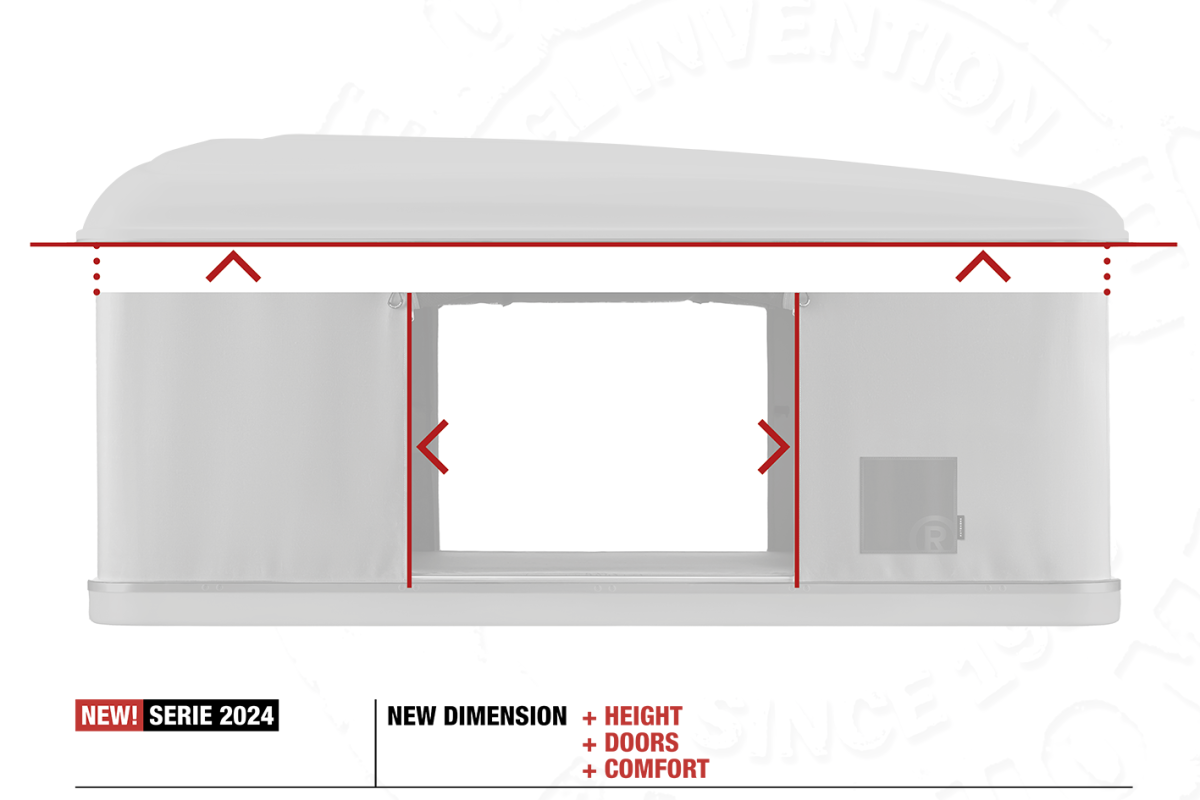 - Boden: „Sandwichstruktur“ mit zwei Stahlschienen. 4 integrierte Handgriffe ermöglichen ein einfaches Bewegen des Dachzeltes.
