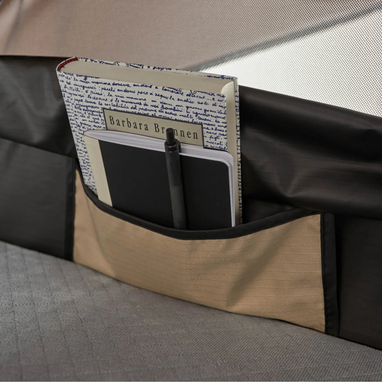 Das Zelt ist mit praktischen Extras ausgestattet, darunter dimmbare LED-Innenbeleuchtung, Schuhtaschen und Moskitonetze. Für das LITTLE BAMBOO GEN. 2 ist zudem passendes Zubehör erhältlich, das deinen Campingausflug noch komfortabler macht. Optional kannst du ein Vorzelt, ein Thermo-Innenzelt oder eine Teleskopleiter bis 260 cm für höhere Fahrzeuge hinzufügen. Ein Upgrade auf eine unserer beliebten Memory Foam Matratzen ist ebenfalls möglich.