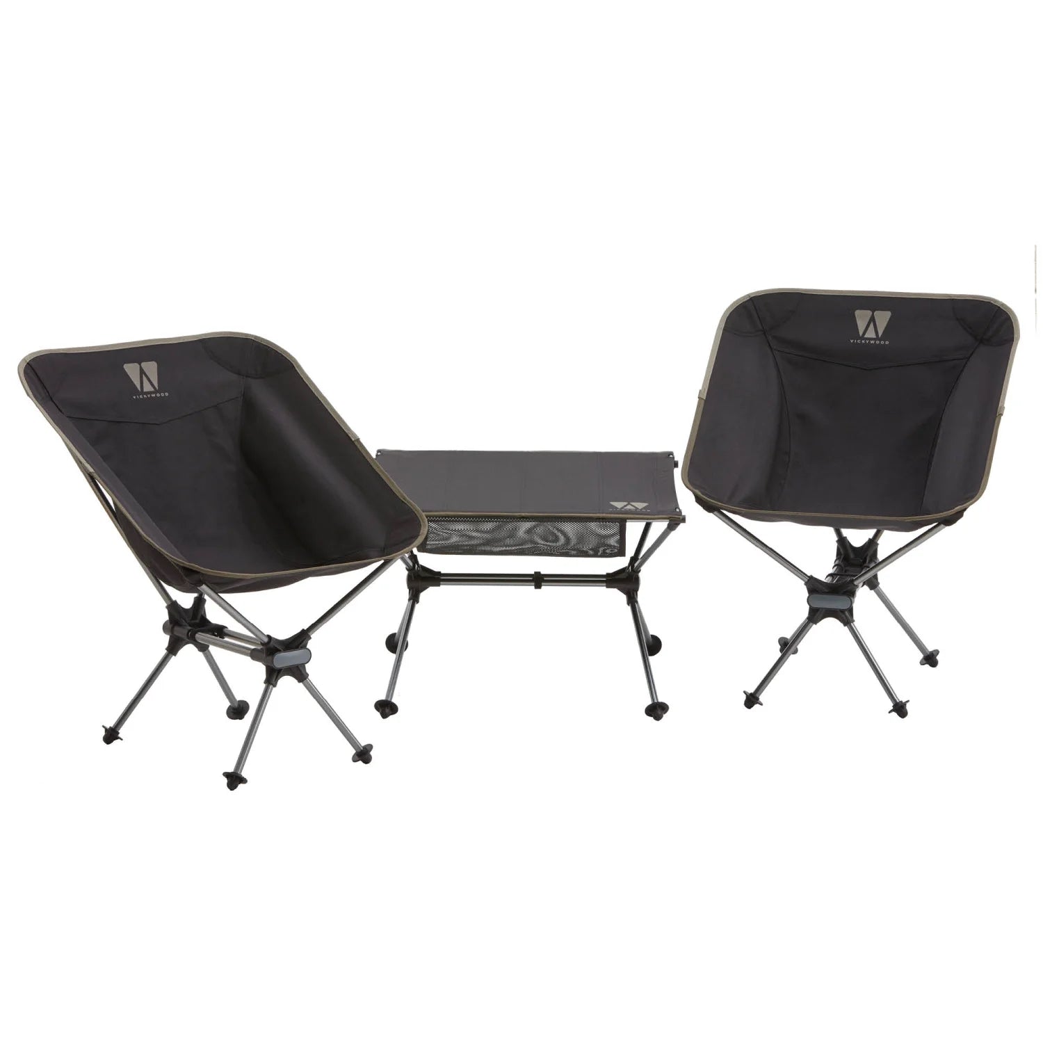 Im Set sind zwei VICKYWOOD Lightweight 2.0 Campingstühle und ein passender Campingtisch enthalten. Dazu gibt es praktische Tragetaschen, die den Transport und die Lagerung besonders einfach machen.