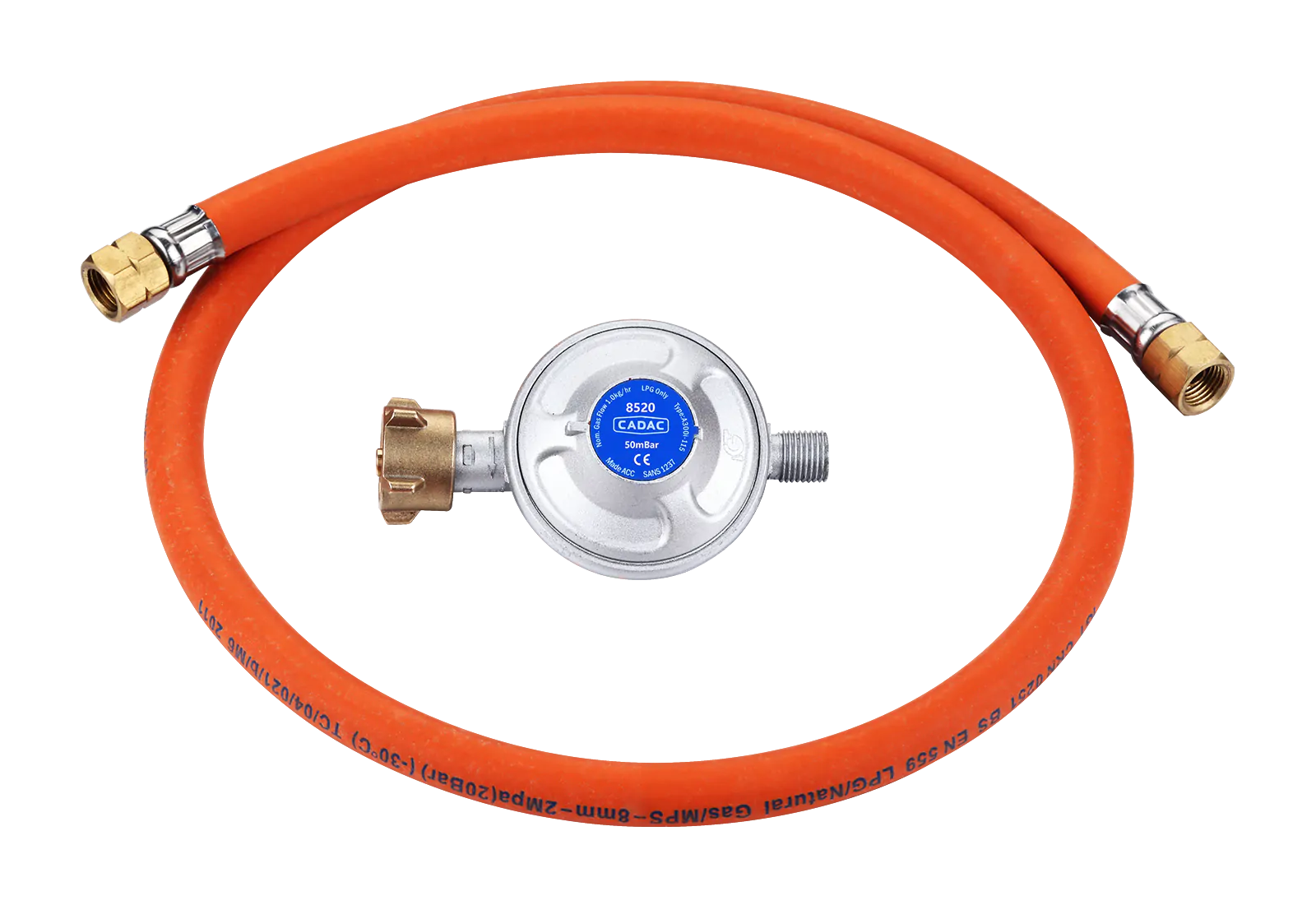 Die meisten CADAC-Grills laufen mit Gas. Um deinen Gasgrill an eine Gasflasche anzuschließen, benötigst du einen Druckminderer (nicht im Lieferumfang enthalten). Ein Druckminderer komprimiert den Druck in der Gasflasche auf einen für deinen Grill praktikablen Druck (50 mbar).