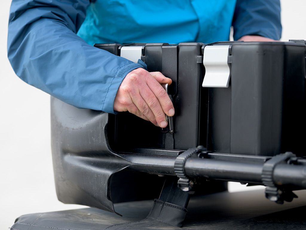 - Müheloser Zugriff auf das Wolf Pack Pro – von Front Runner durch Entfernen der federnden Halteclips.
